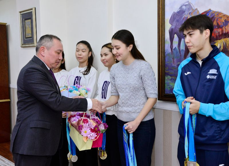Сборная команда университета по тогызкумалак на приеме ректора